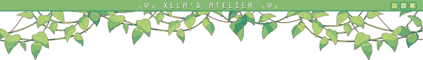Hi! It's Xela! I wanted to make this page to express myself a little bit and share some of my favorite stuff. It'll also serve as a timecapsule of sorts, since I tend to be forgetful or have time blindness.My background is in web design and animation, but I rarely ever use it.